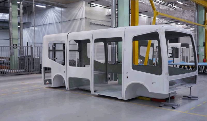 Our composite chassis bus exterior. You can ride the final bus in Budapest.